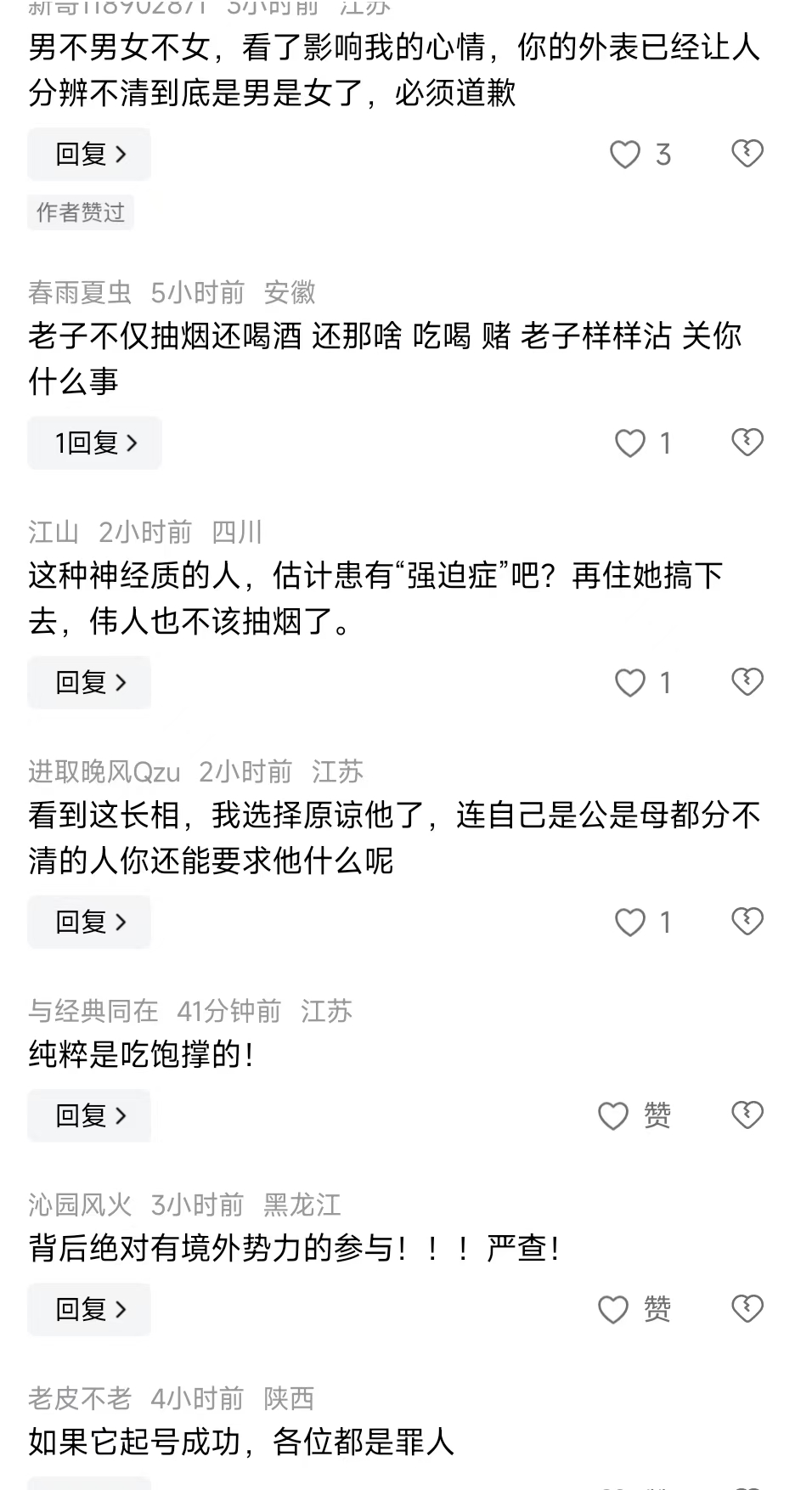 再加上其颜值没有长在国民同胞们的审美点上〔根本欣赏不来〕,过于特立独行、暴击眼球的中性风〔非男非女〕和乖张利己的情绪,雌雄同体、阴阳失调,人们自然而然会产生“生理性的厌恶感”,不往死里开怼才奇怪呢~~~