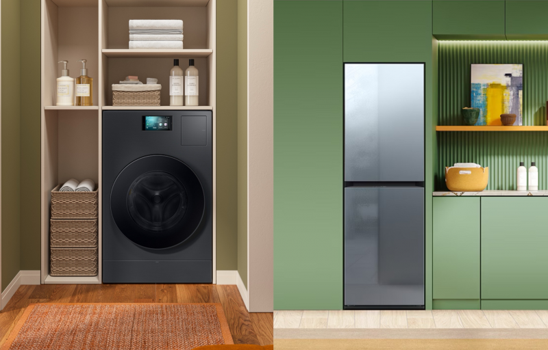 左为三星AI神 黑钻热泵洗烘旗舰,右为三星AI神 黑钻衣物护理机
