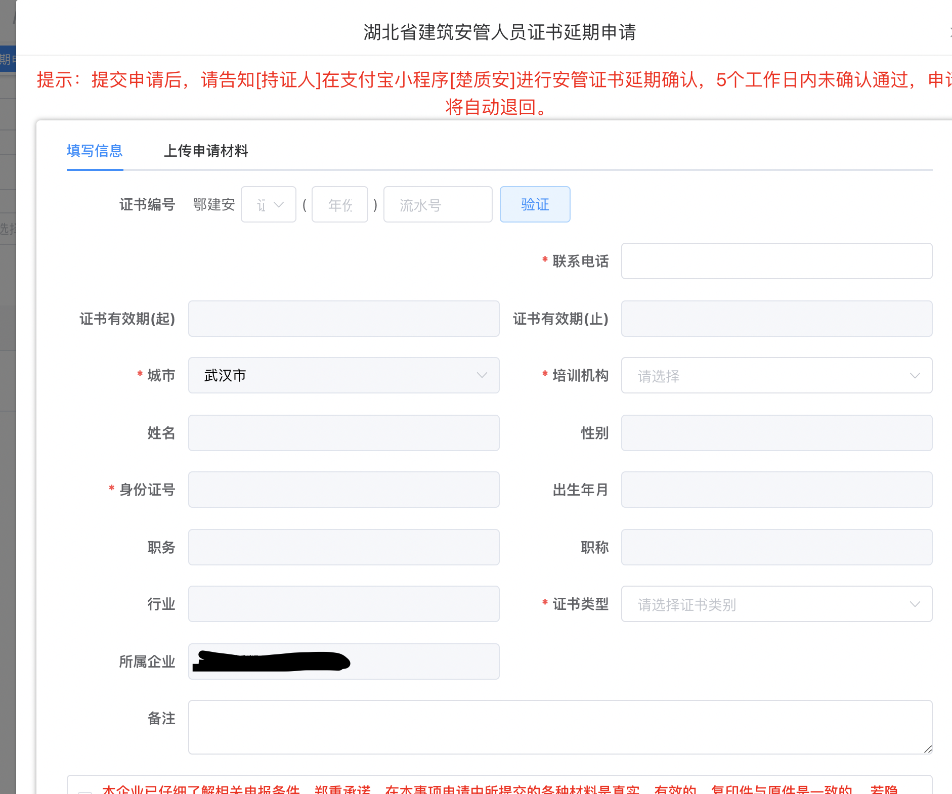 说说建筑安全员c证延期简单流程1.公司进入安管系统后台。2.提交延期申请,上传申请材料。3.延期申请表、年度安全教育合格证明、承诺书。4.提交申请后,持证人要在楚质进行安管证书延期确认。
