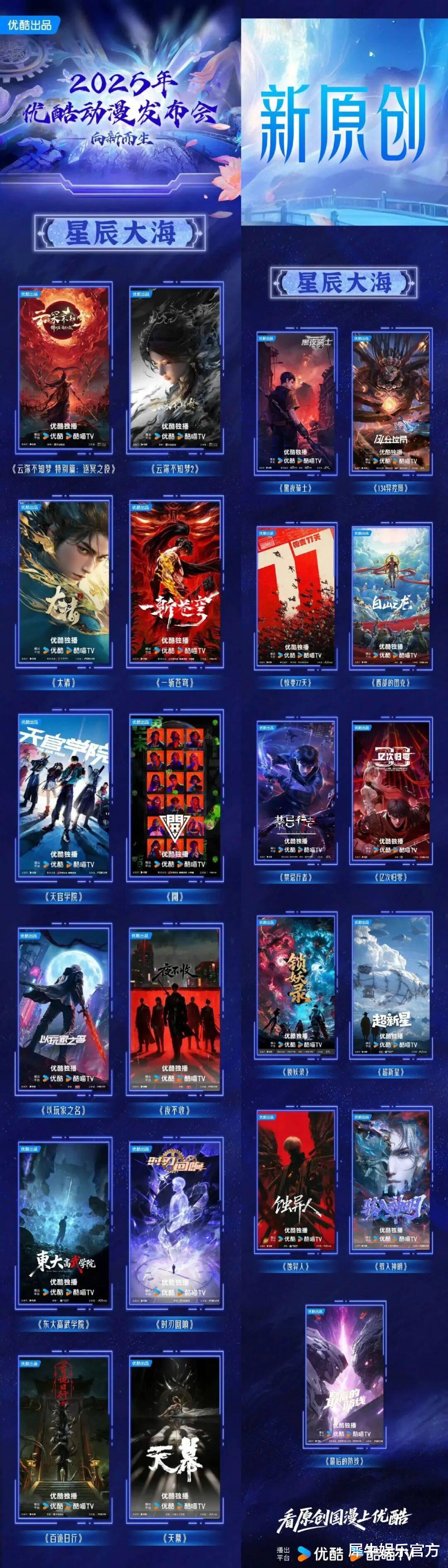 而今年的重头戏原创新作对应的“星辰大海”板块,涵盖的23部作品占优酷动漫片单总量的一半以上,充分显示出平台在原创孵化与内容自研上的投入大幅升级。