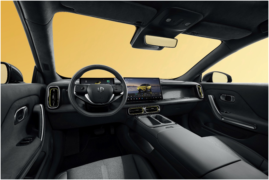 细节上,零跑Lafa5全系标配无边框车门和纯平侧窗,B柱高亮黑玻璃饰板与无框车门一体化融合,透亮时尚,整体感更强。19英寸掠翼运动轮毂、6处辅助驾驶小蓝灯以及高亮黑钢琴烤漆饰件进一步强化了整车的精致感。为优化空气动力学,零跑Lafa5通过主动进气格栅、导风气帘等16项设计将风阻系数降至0.256,有效提升CLTC续航35km。此外,新车外观提供电掣黄、风驰灰两款专属色,以及备受年轻用户喜爱的摩根粉、星夜蓝等共计6种配色,丰富选择满足Z世代用户对个性的多元化表达。