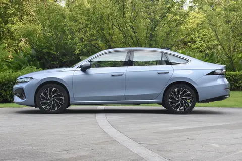 侧面的流线小溜背是精髓,老款的 “直板腰” 终于没了,加上上下两条特征线,阳光底下能看到车身侧面的光影变化,比同级的朗逸 Plus、轩逸那种 “平板车” 造型高级不少;比较让我惊喜的是隐藏式机械门把手,这玩意儿在新能源车上常见,但速腾 L 加了个 “德系小心思”—— 保留了机械解锁功能。