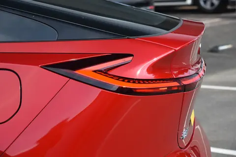 当第一眼看到丰田bZ5时,其“锤头鲨”仿生前脸便让人过目难忘。封闭式格栅与狭长的LED矩阵大灯组合,如同机械生物睁开的双眼,点亮时内部“光羽”灯带缓缓展开,科技感与攻击性并存。两侧导流槽并非装饰,而是将风阻系数压至0.24Cd——这一数据甚至优于部分百万级跑车,既降低了高速行驶时的能耗,又让车身线条更显凌厉。
