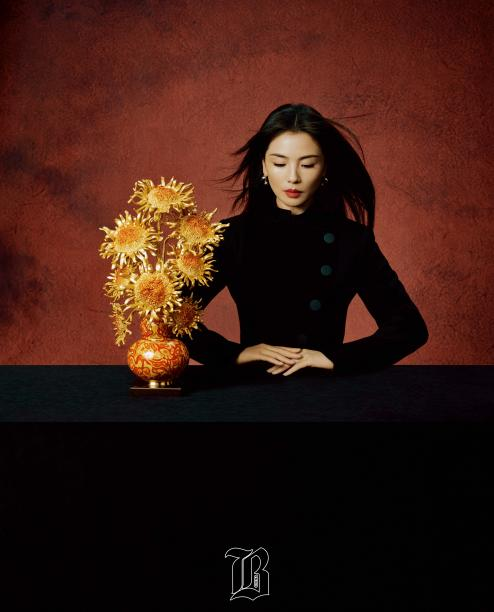 刘涛在《Barbes 中文版》大片中与朱炳仁・铜 《燃烧的向日葵・国葵》合拍