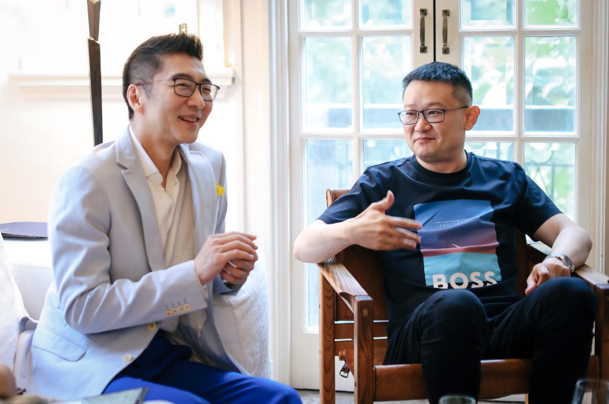 品牌大使赵胤胤(左一)、景顺集团董事长邱炜萤(右一)共聚一堂,漫话对时间与物质之美的感悟)