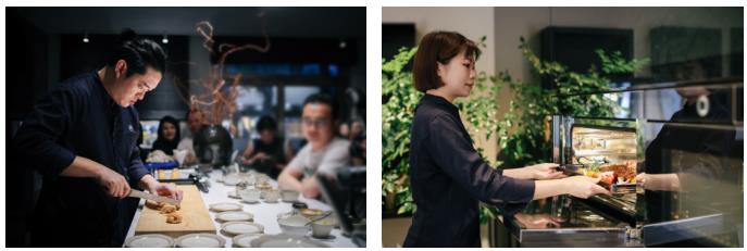 瑞族将“五感”融入空间,并触动生活。瑞族配备行业内唯一属于自己品牌的瑞族美食学院V-GA,集结多元国际背景、经验丰富的创意厨师团队,为每位用户提供从食材到餐盘的精彩味蕾之旅。在本次活动中V-GA还特别定制了“时间与物质之美”主题餐单,6款独具特色的美味与2款饮品,从食材到名称都将主题具象化。“凝为琥珀前”鸡尾酒将时间的痕迹呈现于眼前,配有的二维码识别后赵胤胤先生弹奏的《六月船歌》在耳畔流淌。而从面包脆片配南瓜“金色瞬间”到象征着永续概念的没有牛肉的塔塔“塔塔新纪元”等多款小食,也细腻解读着主题并充分展现了Grand蒸烤多功能机应对百人派对出餐的轻松,为宾客带来了一场感官盛宴。
