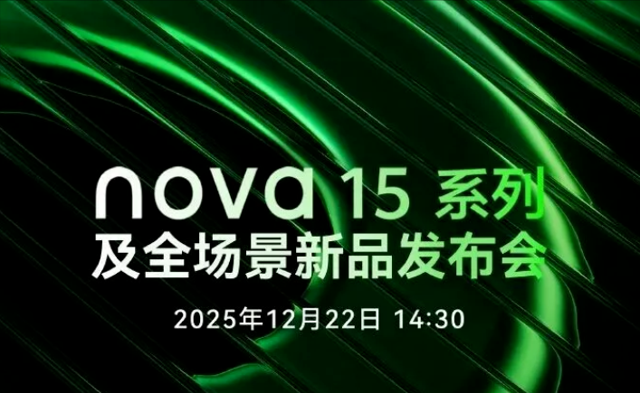 而这一切,距离发布会仅剩不到一周。华为终端官方已正式宣布:nova 15 系列及全场景新品发布会定档 12 月 22 日 14:30,目前华为商城也已上线 nova 15、nova 15 Pro、nova 15 Ultra 三款机型的预订页面,配色命名年轻感十足:“好搭紫、带感绿、零度白、幻夜黑”。