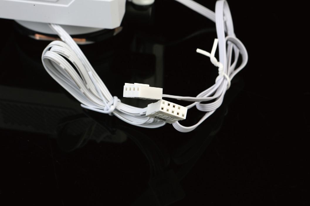 ▲散热器冷头部分配备2个接头,分别连接主板上的USB、小4pin接头。