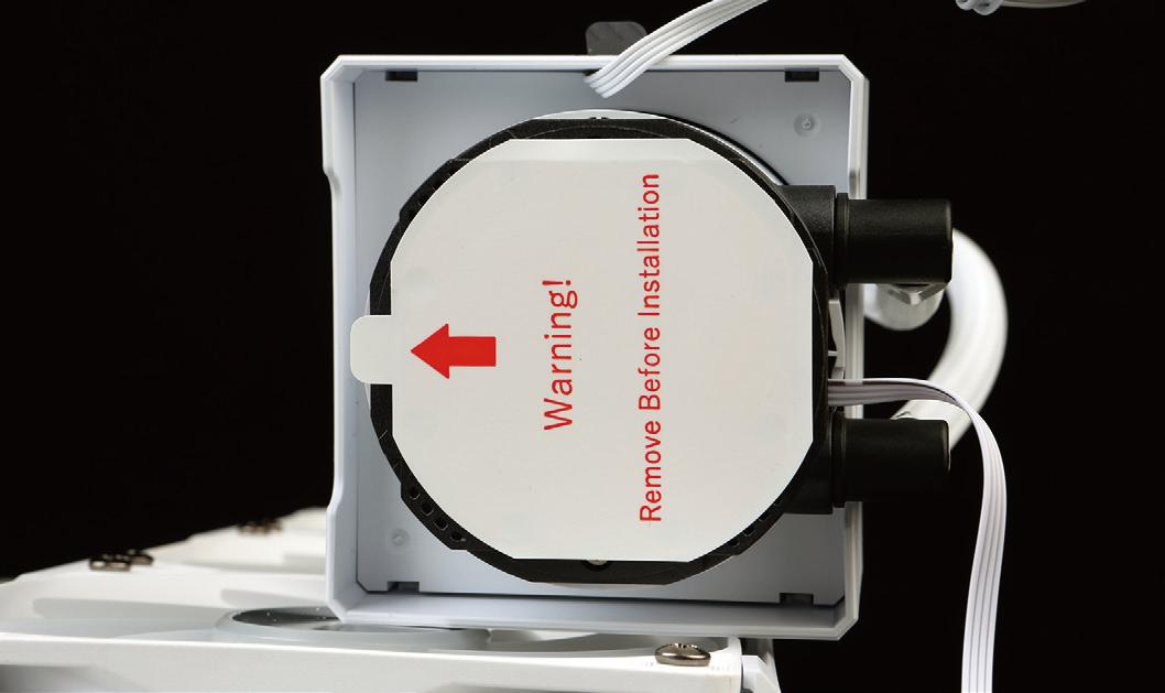 银欣E360 MAX采用了三相电机水泵,在4.2W(12V/0.35A)的功率下就能爆发出最高3000rpm高转速,高转速水泵可提高扬程和水循环速度,从而提升散热效率。银欣E360 MAX的冷头尺寸为94mm×86mm×57mm,安装时完全不用担心兼容性问题。另外,冷头的底部采用了大面积紫铜底座,镜面铜底可更好地贴合处理器表面,提高散热效果。特别需要提醒的是,使用时切记揭开冷头底部的保护膜。