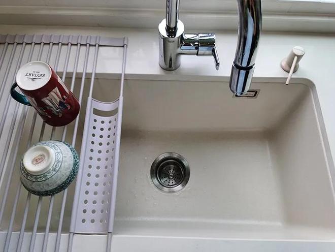 觉得白色的石英石水槽,不仅好看,还好用。