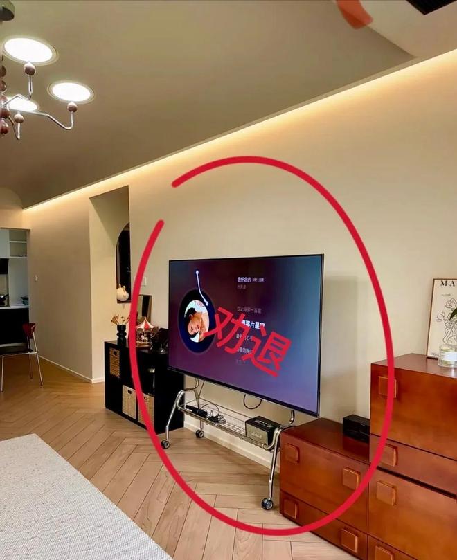 你在网上看到的家居博主们营造的推着电视到卧室和厨房的美好场景,也就是拍视频的时候推一下,平时都是闲置的。