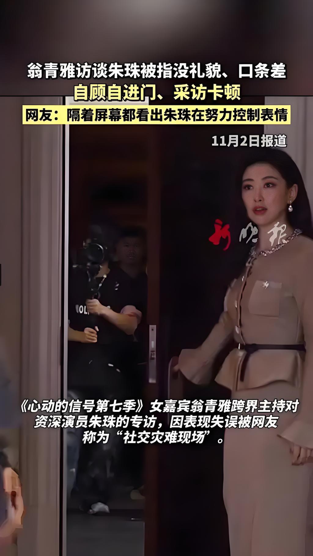 而且,采访刚开始,翁青雅就出现了一个很低级的失误,她在朱珠打开房门迎接她的时候,连招呼都没打一声就直接往里走了。