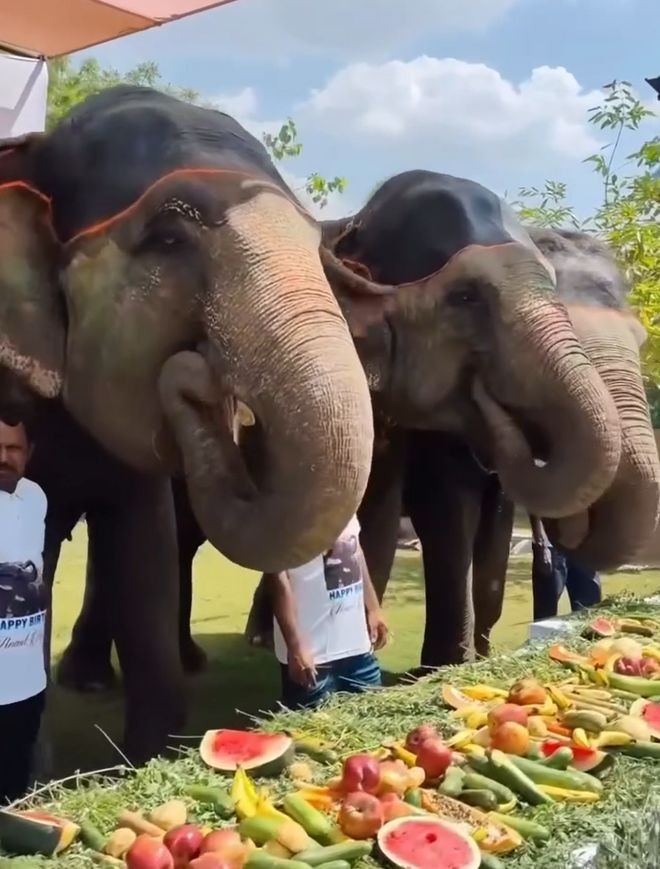 4月10日,阿南特以“服务与奉献”为主题,对印度的大象进行了一场规模浩大的款待:在全国多个地区,为大象提供了一次义务服务。