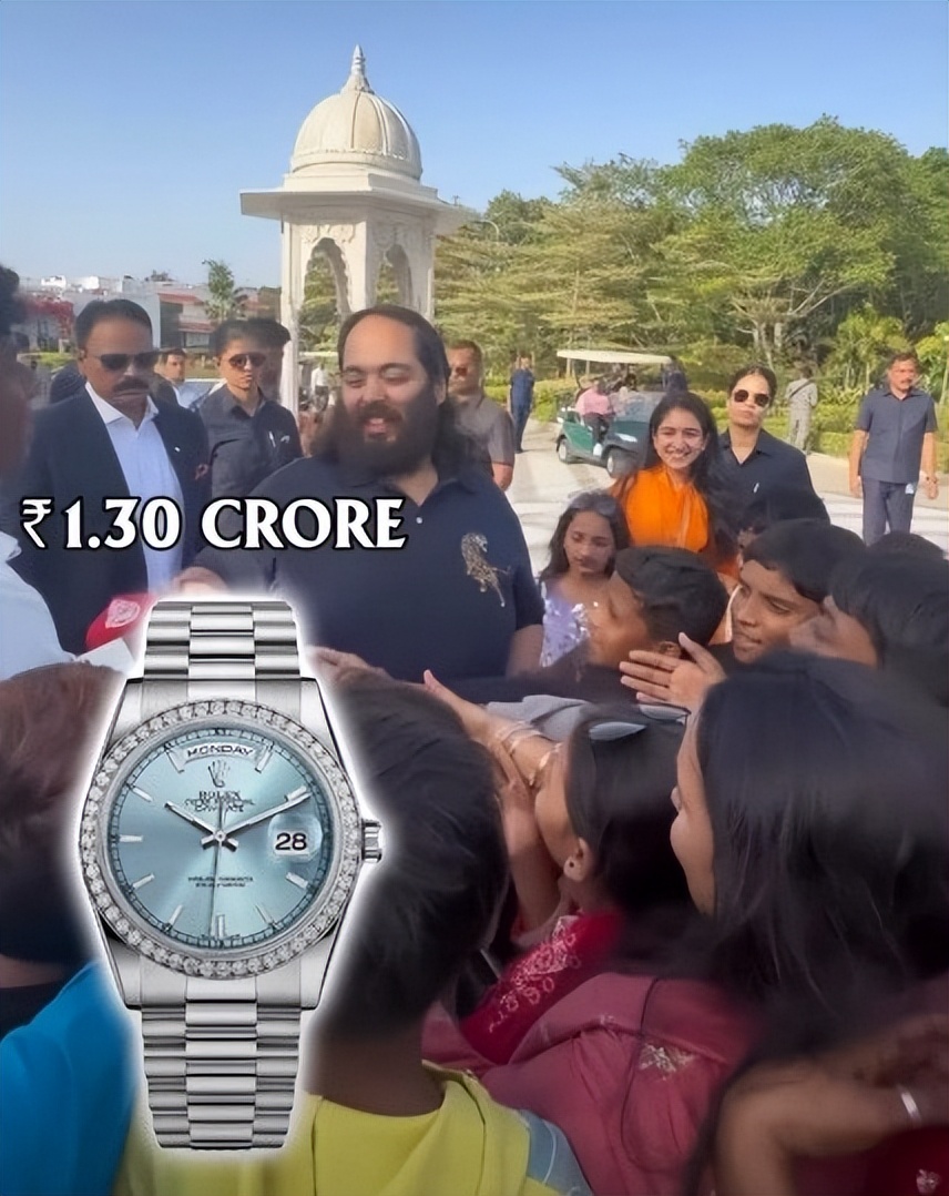 在这一晚,阿南特身上的亮点多到数不过来,巨钻胸针,闪闪发光的宝石纽扣,还有手上那18K的黄金劳力士手表,据说其价值高达1.3亿卢比,这可不是百万人民币那么低调的事了。