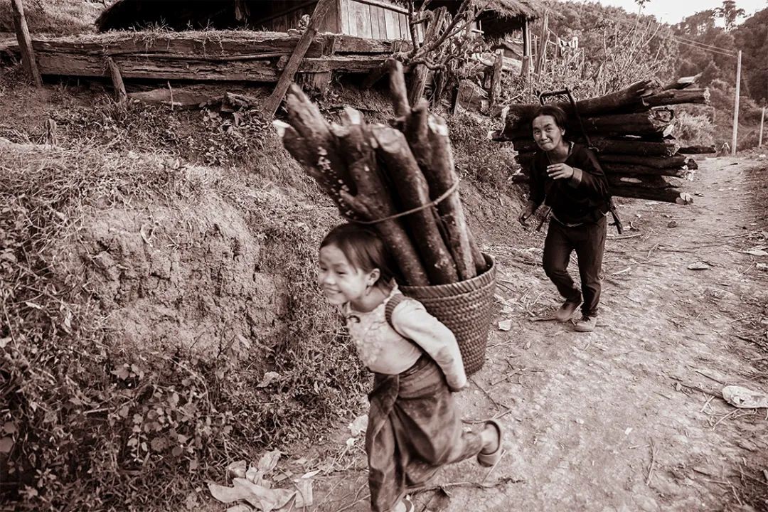 12岁时,戴眉曼已经能背着几十斤的柴捆在山路上行走。