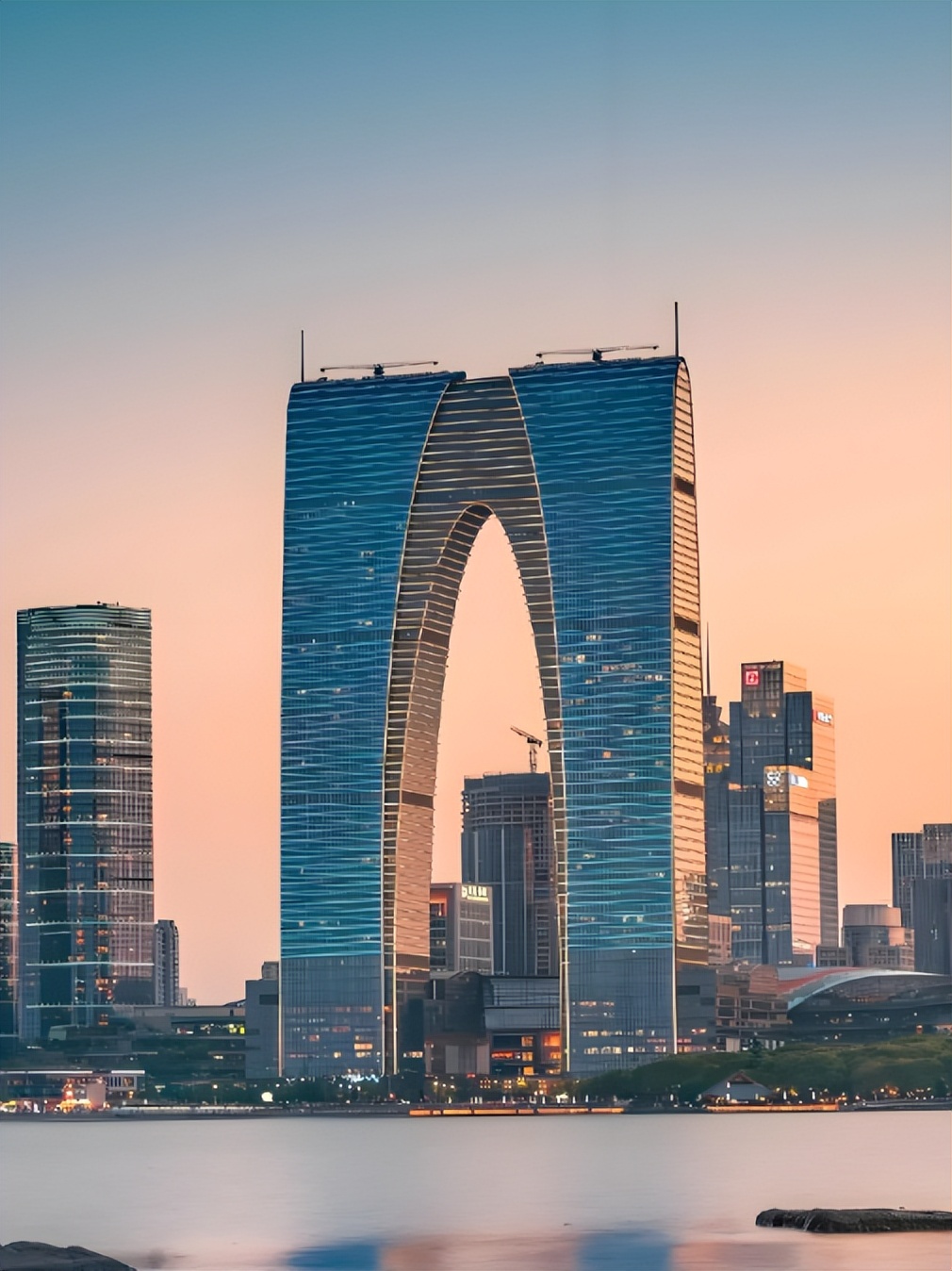 苏州的“大秋裤”大厦太火爆,让人忘记了它还有一个“东方之门”颇具浪漫主义情怀的本名,它并非简单的“形似裤子”,而是暗藏设计巧思:南北塔楼总高278米,分为南、北裙房与塔楼主体,整体造型借鉴了苏州古典园林的“月洞门”意象,寓意“开门见山、连接古今”。实际上,它还拿下了不少的建筑设计大奖。