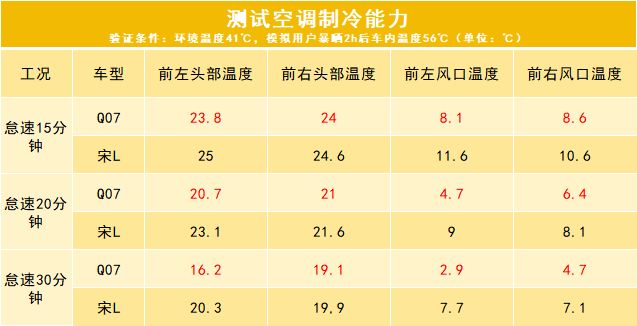 当然这2台SUV也有相似点,那就是都配备了全景天窗,不过有朋友肯定会发出疑问,暴晒的情况下谁的制冷效果好呢?根据第三方实测来看,暴晒2小时后车内温度高达56℃,怠速情况下同时开启空调制冷,长安启源Q07的出风口温度全程都更低,制冷效果也更好,带来的直观表现就是,15分钟长安启源Q07就能达到相对舒适的温度,出风口温度保持在8-9℃,比亚迪宋L DM则要花20分钟乃至更长的时间,急着用车的话,显然是长安启源Q07更适合。