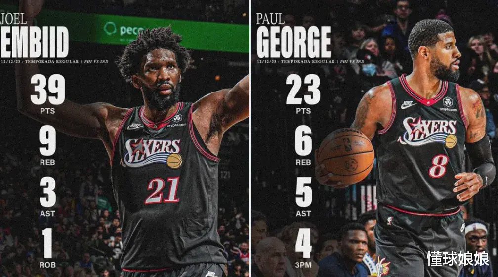 你别说,这好像是这哥俩合作以来,同场打得最好的一场比赛,上赛季恩比德好的时候,乔治一般,乔治好的时候,恩比德一般。