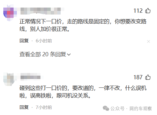 对此,网友也是吵翻了。不少司机认为,正常情况下一口价,走的路线是固定的,你想要改变路线,别人加价很正常。碰到这些打一口价的,要改道的,一律不改,什么误机、误高铁,跟司机没关系。