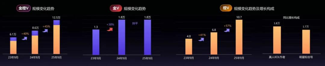 体系的升级已带来了明显效果,根据微博运营高级副总裁曹增辉披露的最新数据,截至今年9月,金字塔顶端的金V保持在1.8万人的规模;次一级的橙V大幅增长至10.7万人,相比去年同期增长57%。
