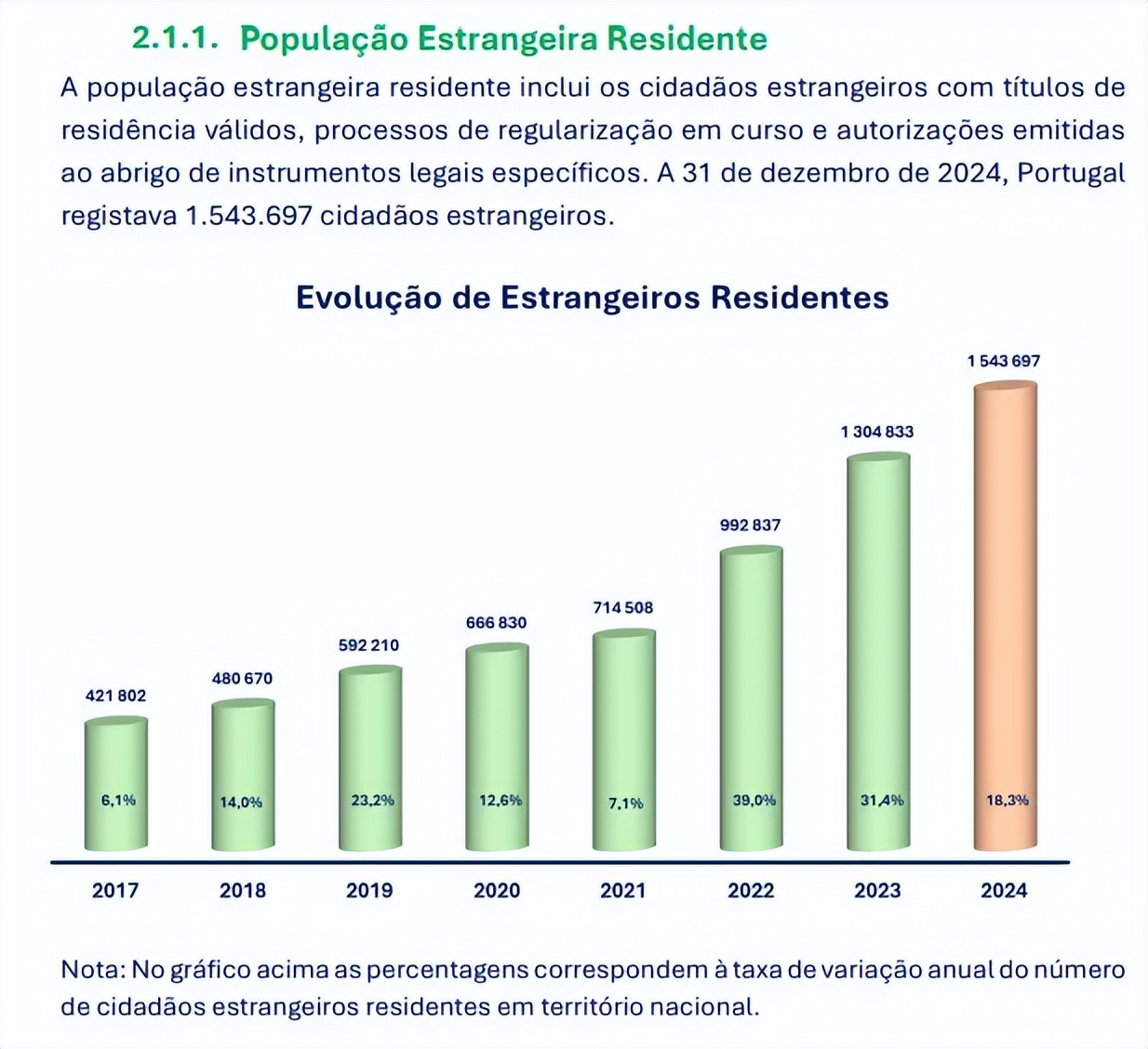 截至2024年底,葡萄牙共有1,543,697名外国居民,是2017年的近4倍。其中,持有效居留卡人数超过109万。