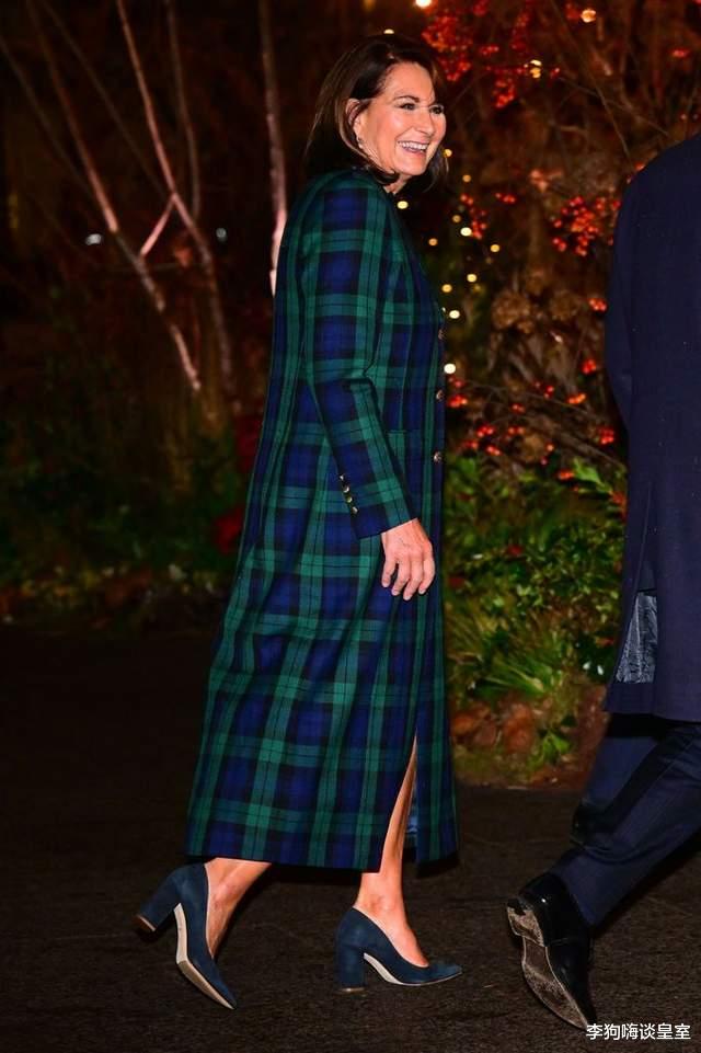凯特的妈妈卡罗尔・米德尔顿,更是把这份格纹传承玩出了默契。2025 年凯特的 “圣诞同心” 颂歌会上,卡罗尔穿了一件布鲁尔之家品牌的格纹大衣,蓝绿复古格纹与戴安娜、凯特的穿搭遥相呼应,长款单排扣设计衬得身姿挺拔,70 岁依旧气场在线。