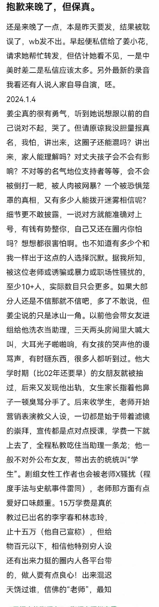 姜尘等人的勇敢发声,无疑给其他受害者带来了很大的鼓舞和激励,让更多的人愿意站出来,勇敢地面对自己的经历,推动社会对相关问题的关注和讨论。