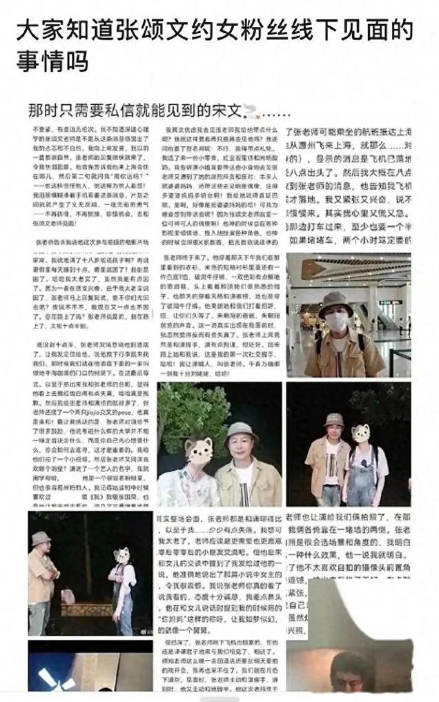 1月6日,一名自称是张颂文粉丝的网友在社交平台上发文,称自己参加了一场由张颂文举办的粉丝见面会。在见面会上,张颂文的态度十分亲切,还主动与粉丝合影留念,甚至多次与粉丝约见,给粉丝留下了非常好的印象。