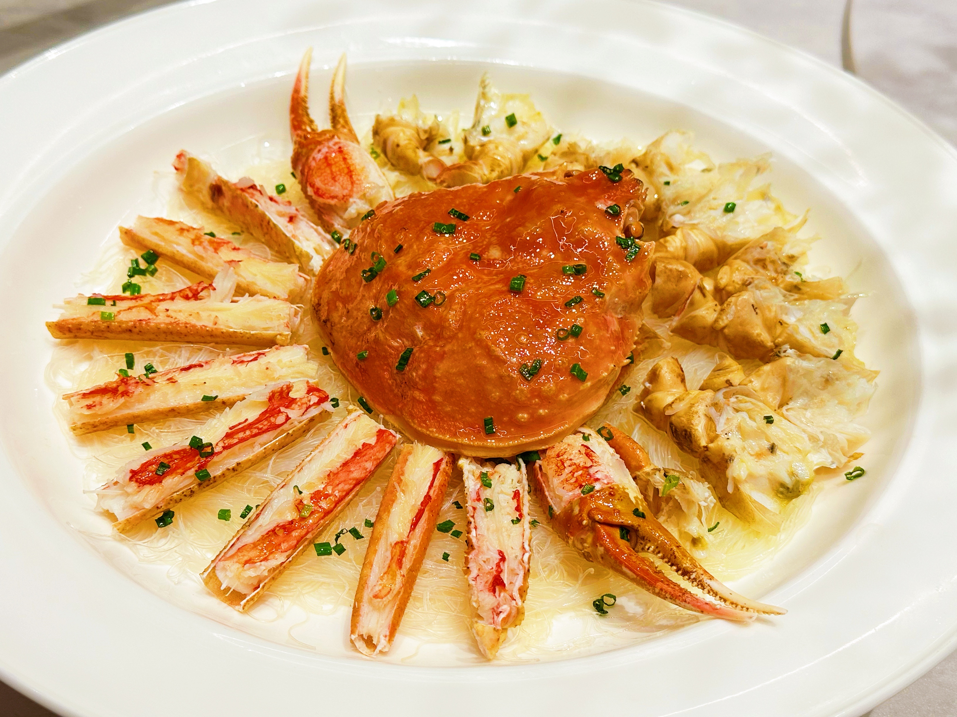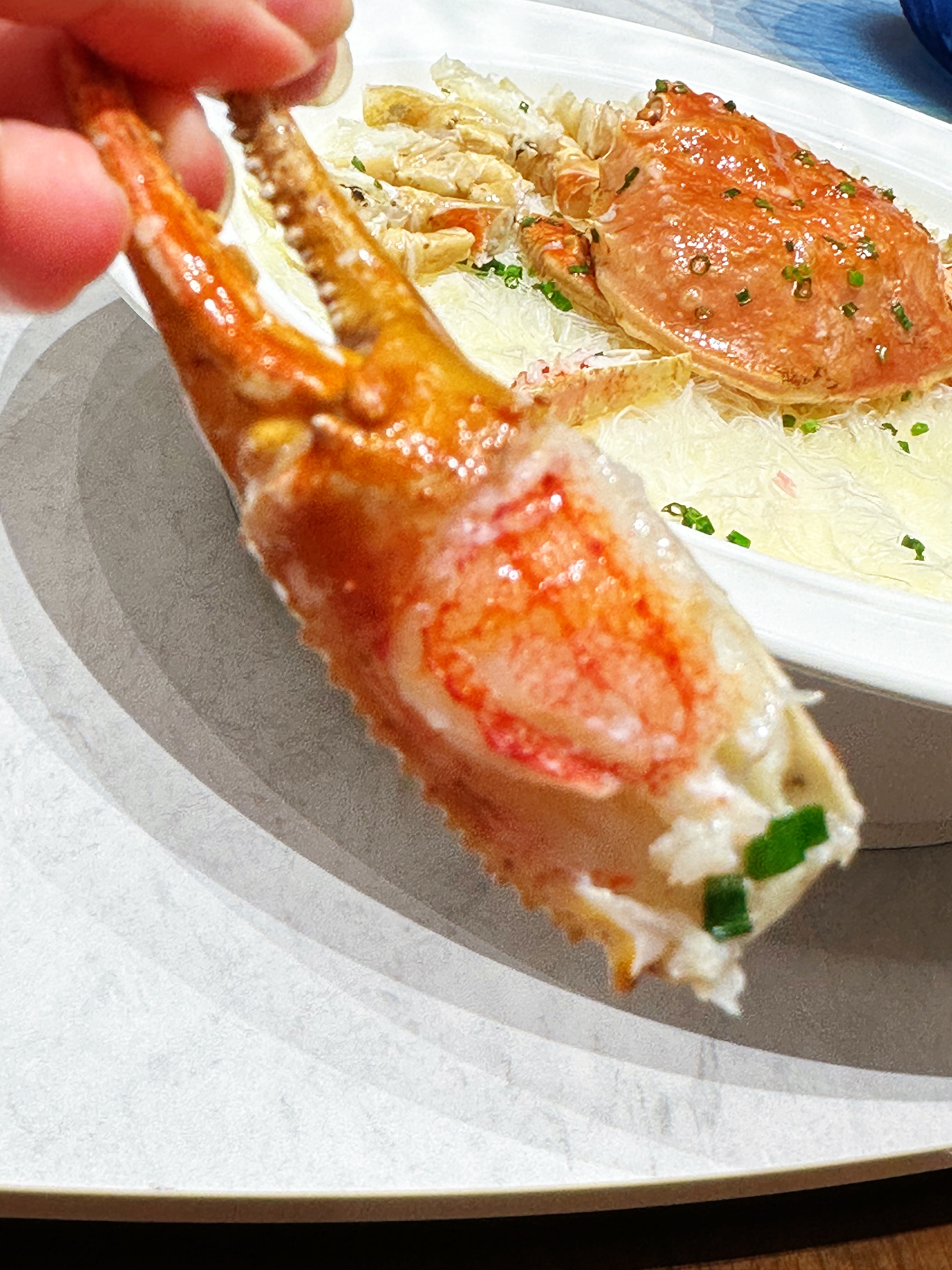 松叶蟹粉丝蒸,一丝丝白嫩的蟹肉鲜美到掉眉毛。商家细心的为大家都把壳去掉了半边。