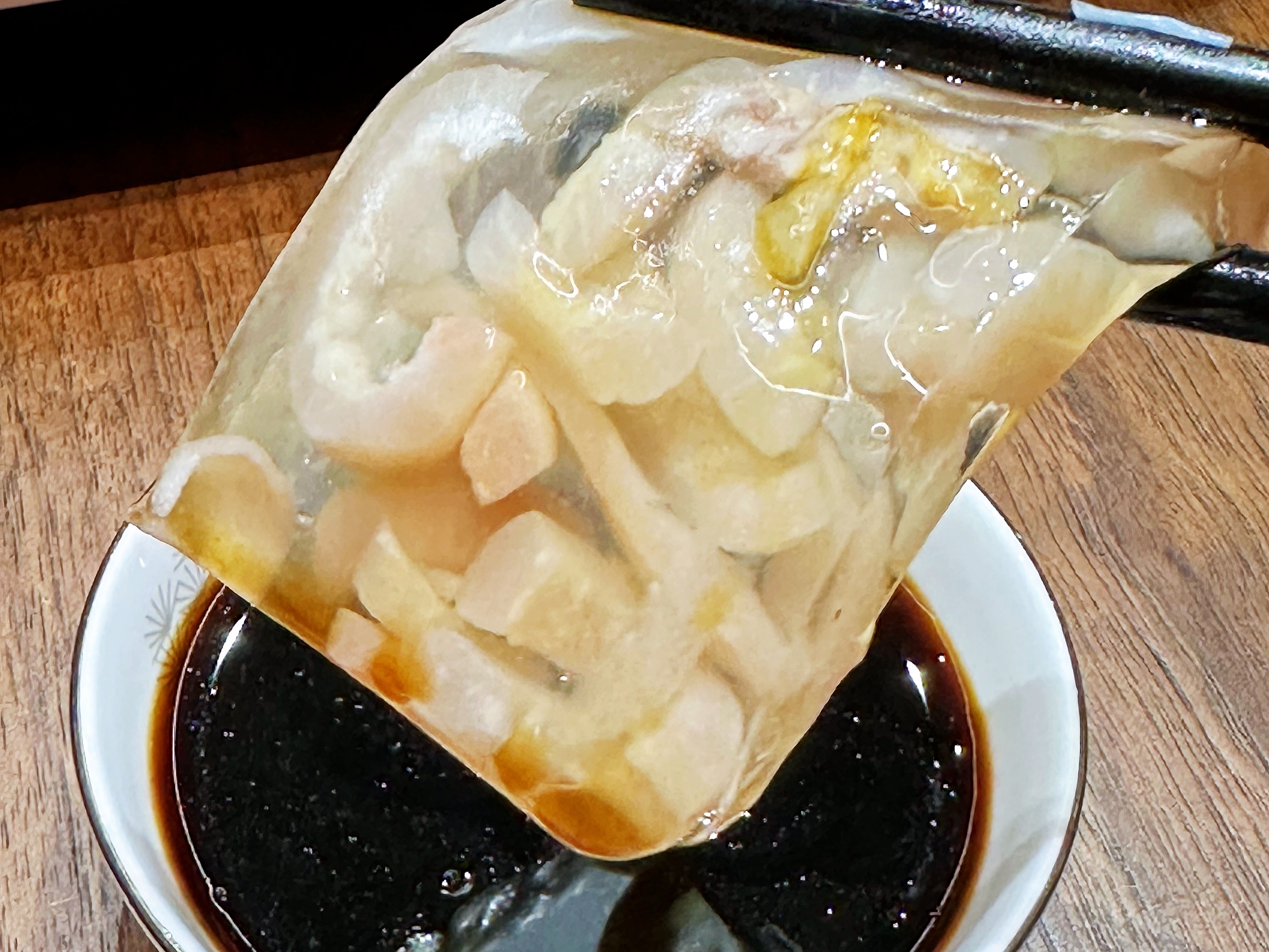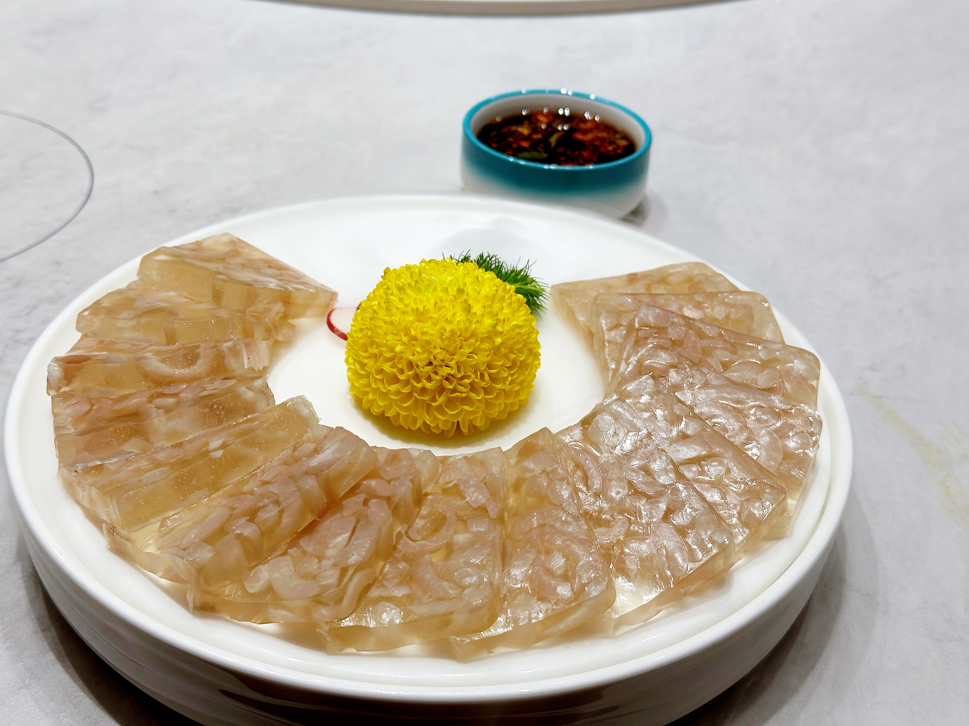 还有手工猪皮冻,晶莹剔透,冰爽Q弹,搭配微辣的蘸汁食用,美妙无穷。