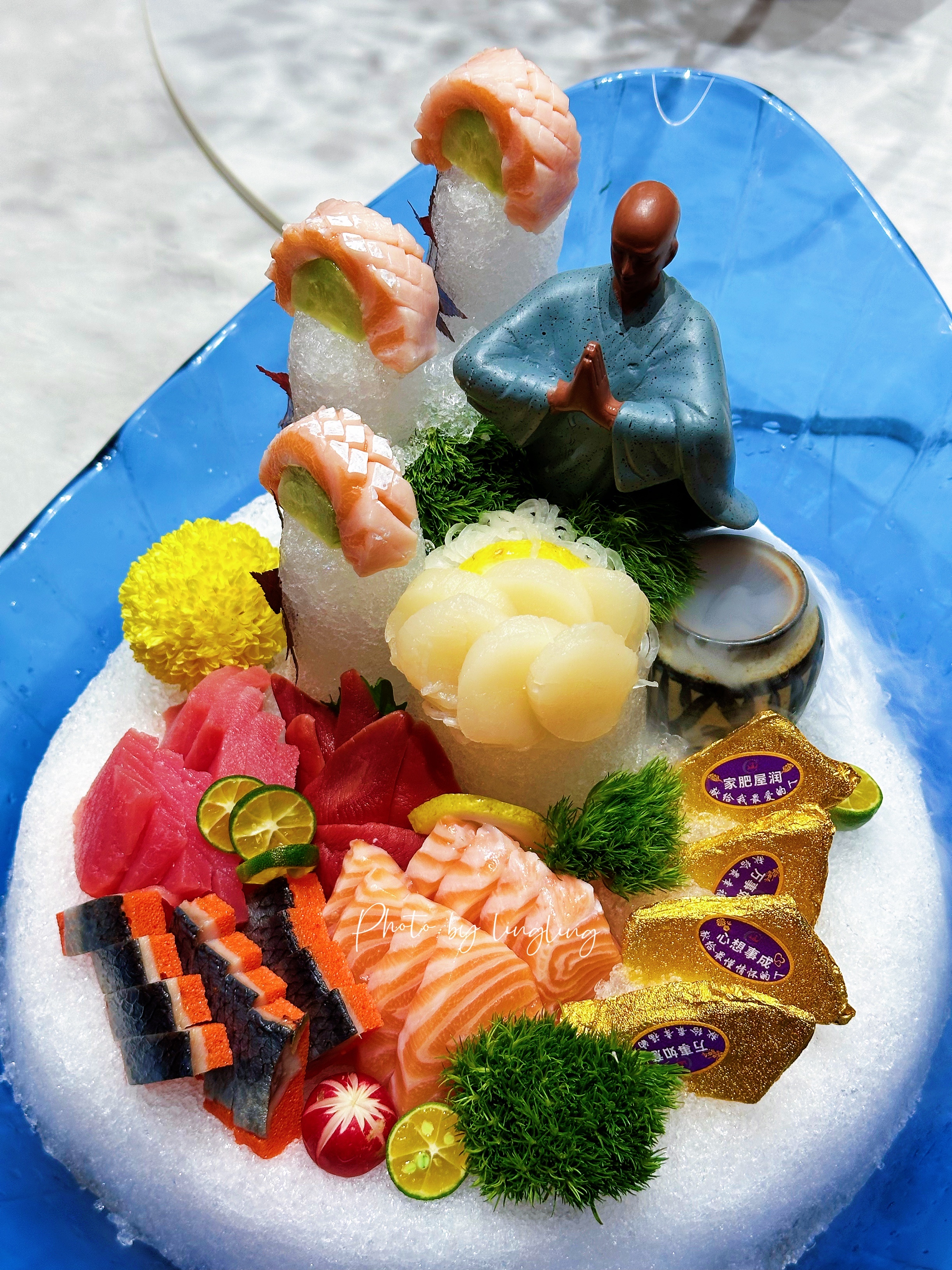 刺身拼盘品种丰富,最爱的依旧是厚切三文鱼,橙黄色的鱼肉,纹理清晰,肥美丝滑,入口即化。金枪鱼、希鲮鱼、瑶柱、鹅肝都品质不错。