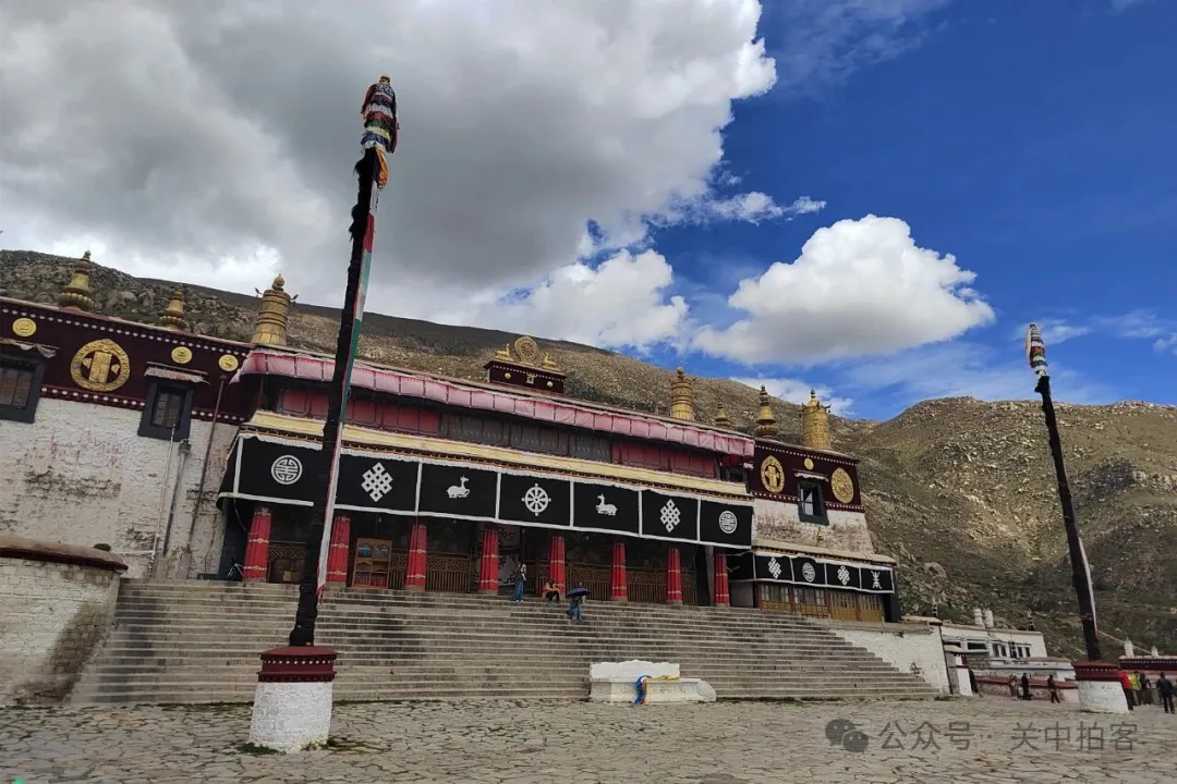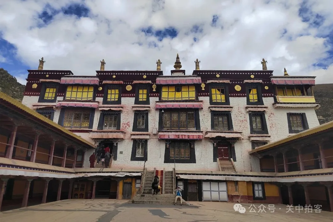 这里三面环山,南面是慢坡地,顺着台阶一步一步向上攀登,按照顺时针方向参观主要的殿堂。由于海拔偏高,高原反应明显,我的头隐隐作痛,每走一段距离都要休息一会儿。从中午12点开始,大约一公里的游览线路,我竟然耗费了三个小时。