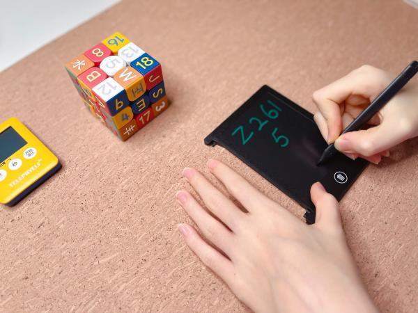 而在触觉方面,魔方上的符号都有凸印设计,即使闭着眼睛也能通过触摸辨识,初中生的姐姐说这就像在玩“立体盲文”,特别考验手指的敏感度。同时也是练习触觉记忆的好方法,就是触摸完以后,把符号通过触摸记忆在手写板上写出来,特别适合让好动的孩子静心下来。