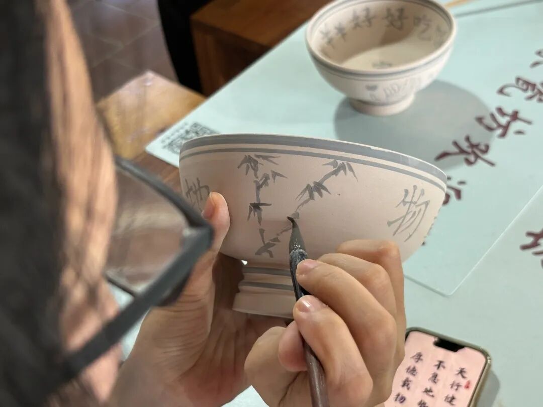 每一只被绘制的大老碗都是独一无二的。待画作完成,工匠们会施釉烧制,几天后,这些作品将通过快递送到游客家中,成为陈炉之行的独特纪念。