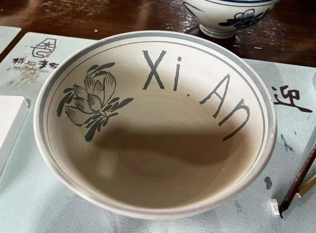 有人画下一株兰花,那是陈炉瓷器的经典图案;有人画下灵动可爱的卡通人物,那是童心的天真烂漫;有人画下梅兰竹菊四君子,那是传统文人的高洁风骨;有人画下奔腾的骏马,那是自由与力量的象征;有人画出腾云驾雾的龙,那是中华民族的千年图腾;有人画下花草,那是四时更迭的生命韵律;有人画下山水,那是天人合一的哲学意境;甚至有人写下“西安”二字,那是对家乡的热爱。