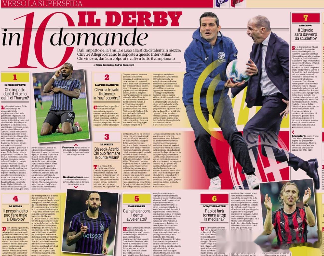 此外,《米兰体育报》指出,齐沃和阿莱格里两人在德比前选择了不同的备战策略,齐沃选择“减压、放松”,阿莱格里则强调“严管、强力约束”。