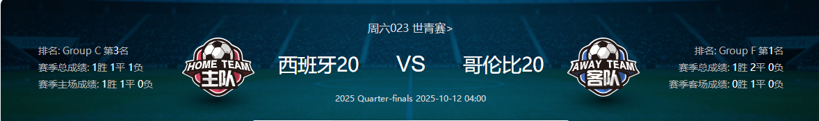 周六023世青赛西班牙U20VS哥伦比亚U20