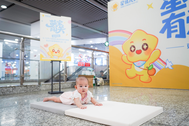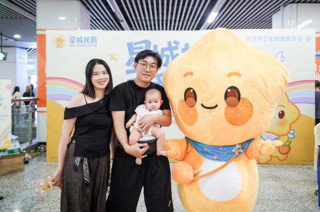 为增强市民乘客的互动体验、深化服务感知,同日,在长沙地铁1/2号线的核心换乘站——五一广场站7、8号出入口附近,一场生动新颖的“星城托育·有爱无忧”主题站厅活动同步启动。超萌的星城托育IP形象“星仔”人偶惊喜亮相,一举成为现场最受欢迎的“明星”。它热情地与往来乘客互动、邀请路人一起拍照合影,并邀约大家扫码了解星城托育服务的最新资讯。