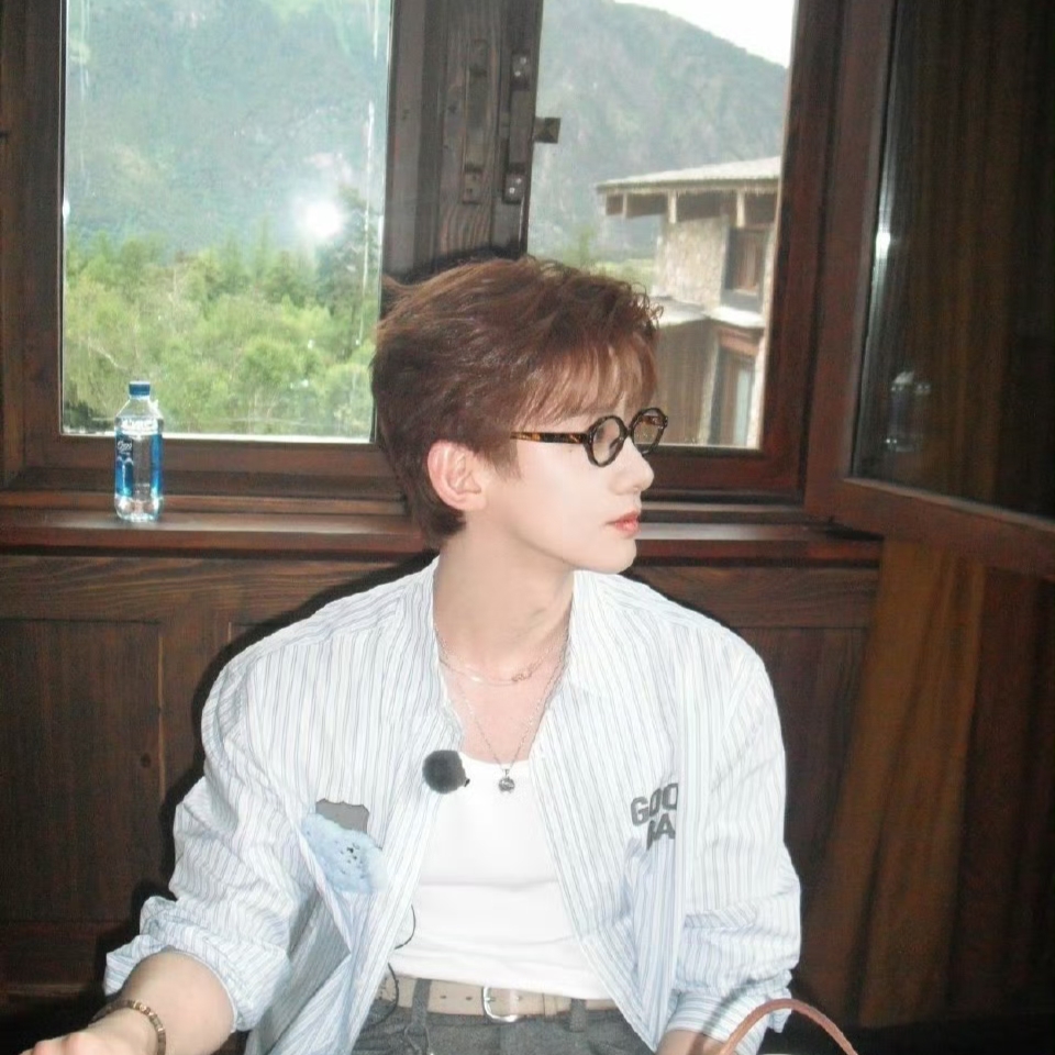写真第一张就抓住了所有人的目光。白敬亭穿着浅色条纹衬衫搭配白T,戴着细框圆眼镜,坐在木质窗前凝望远方。桌上的茶具摆放整齐,窗外是连绵的青山和绿树,整个画面透着一种"岁月静好"的恬淡。这与大众印象中那个活泼搞怪的"小白"形成了微妙反差,让人不禁好奇:这位演员在步入32岁这一年,是否有了新的心境变化?