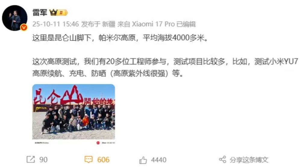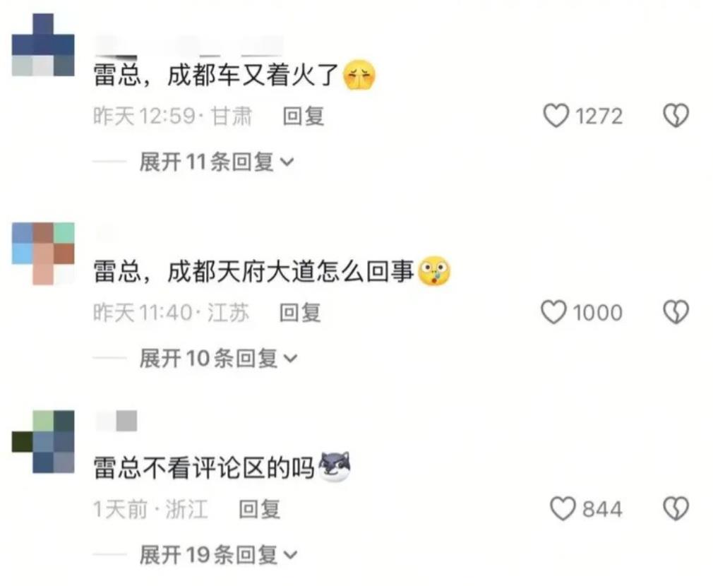 那会儿事情还没传开,下午的时候,有人在雷军的账号底下留了句话,说别总惦记着帕米尔高原的测试,先回头看看成都吧,那行字很短,却很快被点赞送到了最显眼的位置,