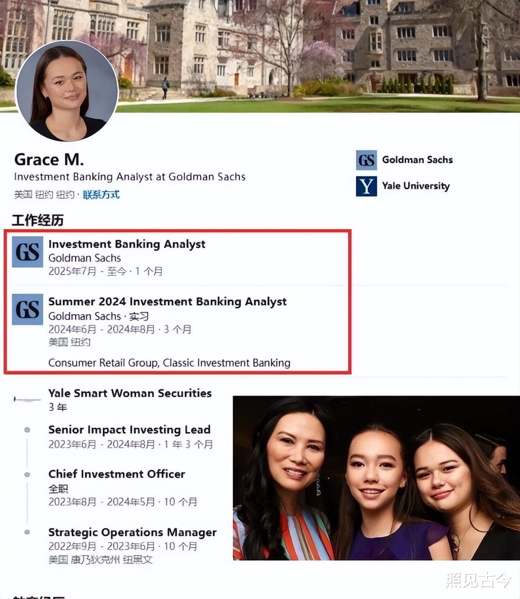 格蕾丝与妹妹克洛伊在大学期间,都曾进入高盛实习。