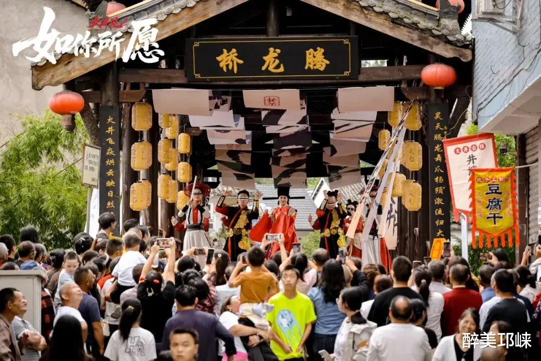 在差异化发展策略下,邛崃各文旅消费场景“各显神通”:平乐古镇的“竹龙巡游”展现民俗魅力,大同镇的“长街宴”联动助农,邛窑的“月耀山河”剧本游活化历史,夹关《一生所爱》光影剧打造沉浸体验,天台山红色长征数字展示馆传承红色基因。