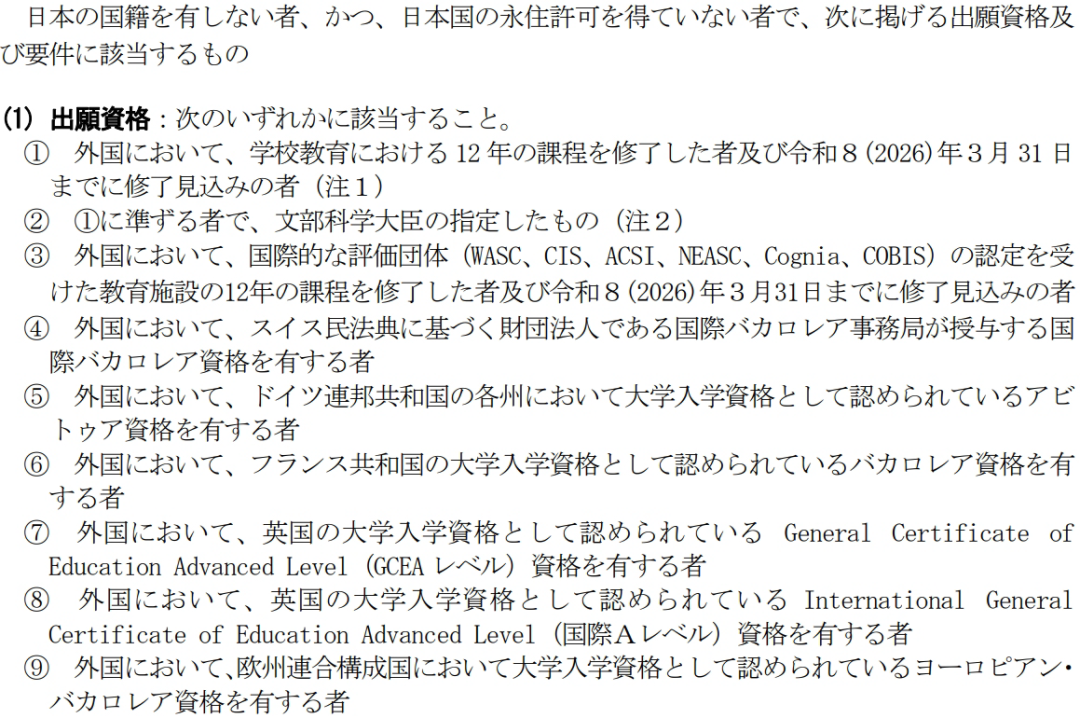 1.非日本国籍者2.完成12年教育经历者或预计2026年3月31日前完成者