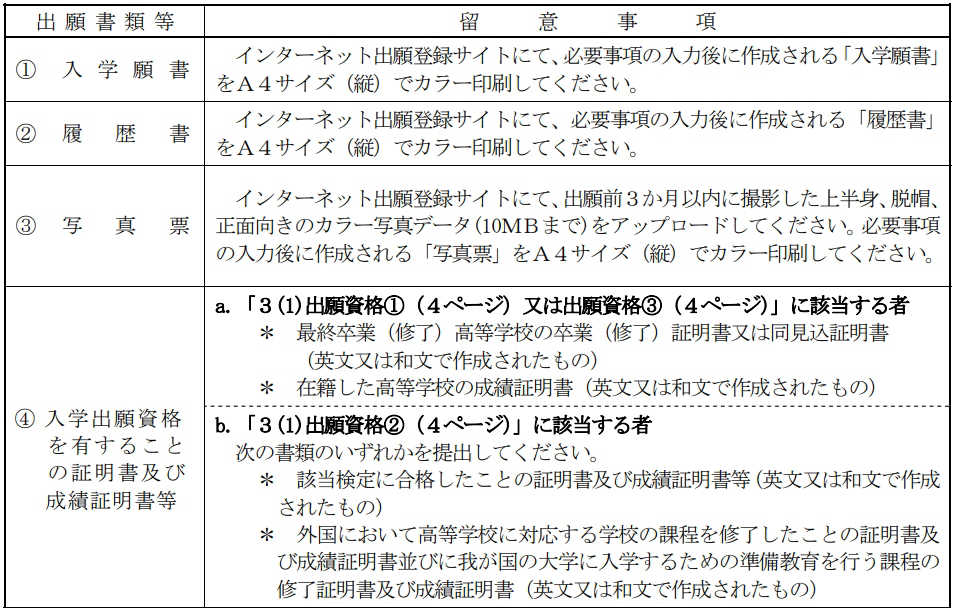 1.入学愿书2.履历书3.写真票4.高中毕业证明和成绩证明书5.日本留学生试验的成绩通知书6.英语资格·检定考试成绩通知书7.志望理由书8.自己推荐书9.日语学校的成绩证明书10.住民票或护照复印件往年报录比