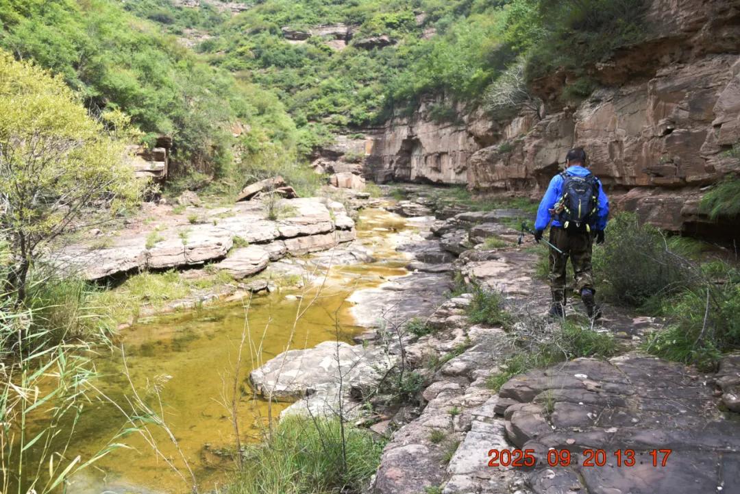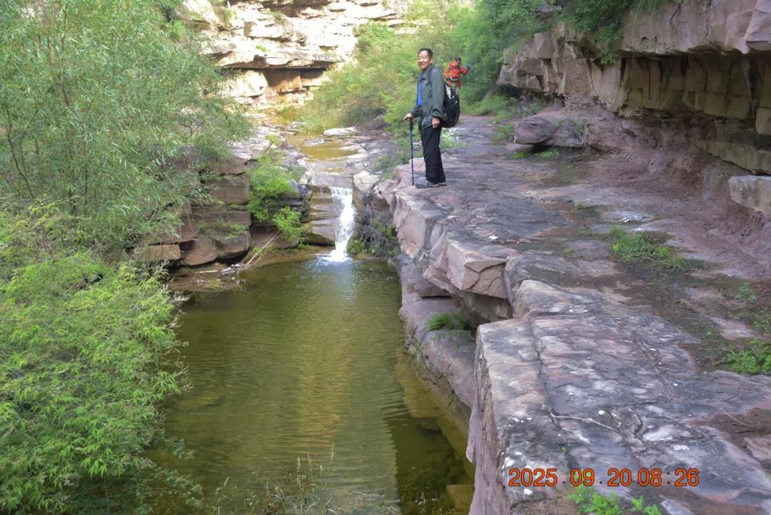 出发前下了四条轨迹参考,但公里数都是十五公里以上,所以知道强度和难度都不小,早上五点半灵石出发,然后到了徒步起点8点左右,徒步起点就虎喊沟水库后面的一个小院,住着两个70多岁的老人,收停车费十元,