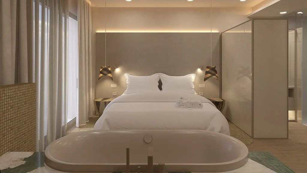 在卡斯特洛酒店不仅能够享受风景带来的安逸,更是在酒店设计上融合了现代简约与自然美学,通过酒店门锁的哑光金属质感搭配流畅的弧线设计,触感细腻,让宾客在使用的使用感受到安心感。