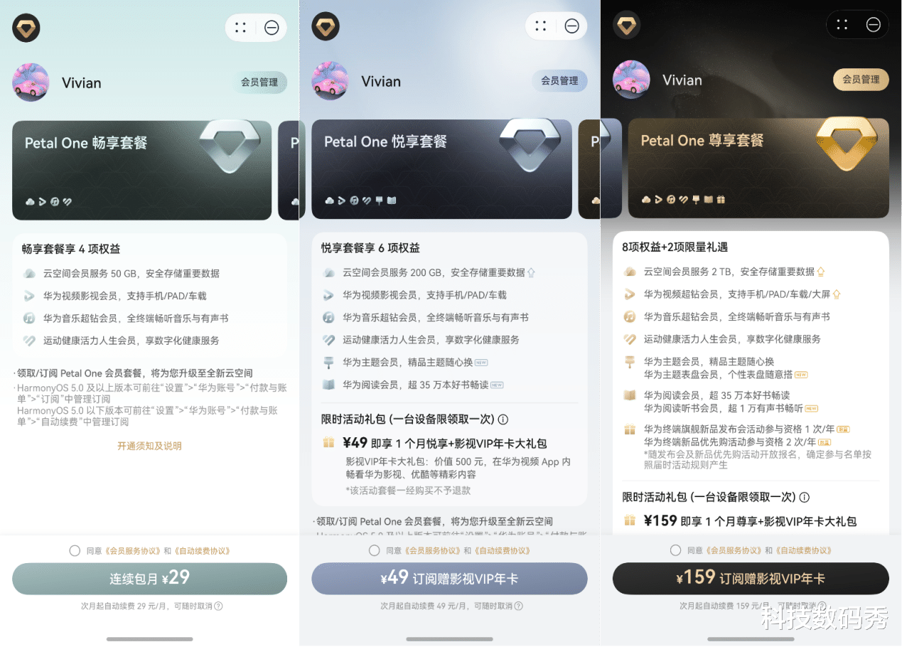 重点来了!我还发现一个“隐藏福利”:现在订阅悦享或尊享套餐,更可额外获得影视VIP年卡大礼包,包含华为视频(含芒果TV)及优酷平台的全年会员内容。相比单独订阅各项会员,更能一站式满足我们的多元化数字生活需求。还有一份限时活动礼包可以领取,这羊毛不薅简直亏大了,强烈建议爱追剧听歌的“通勤党”,去负一屏搜索"Petal One"选择自己倾向的套餐开通体验!