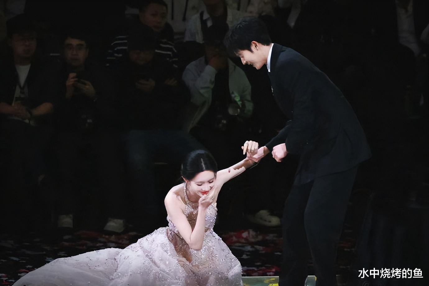 有趣的是,孟子义在颁奖典礼上再次摔跤,她本人从容应对,自嘲“去年摔了今年又摔,明年一定不会摔”。当她摔跤时,李昀锐第一时间搀扶,丁禹兮也隔空做扶人动作,于是诞生了娱乐圈的一大名场面。