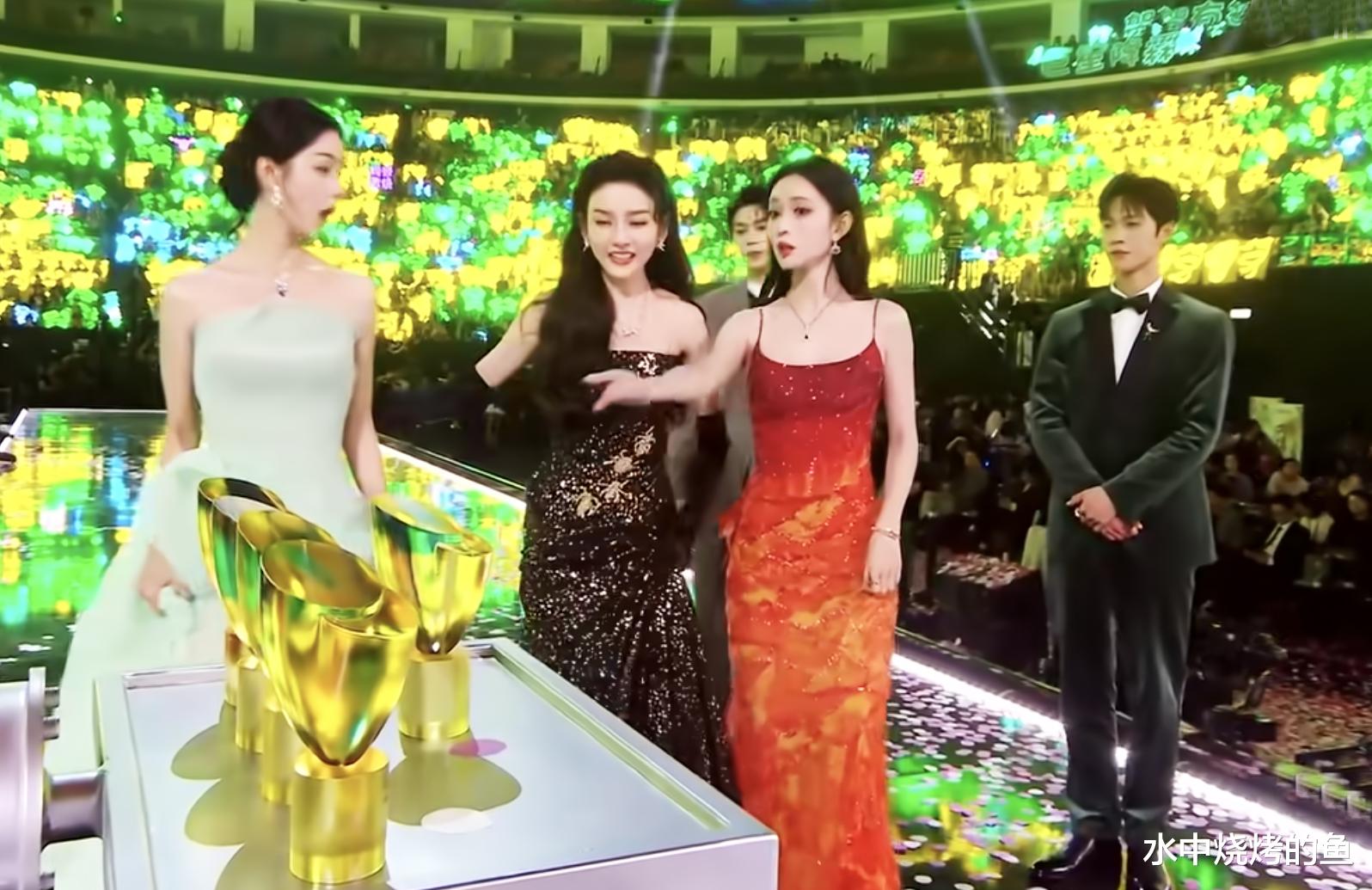 而在颁奖典礼上,5个人同样是按照这样的站位登场,从控场、台本、流程等维度来看,也同样遵从这样的排位。
