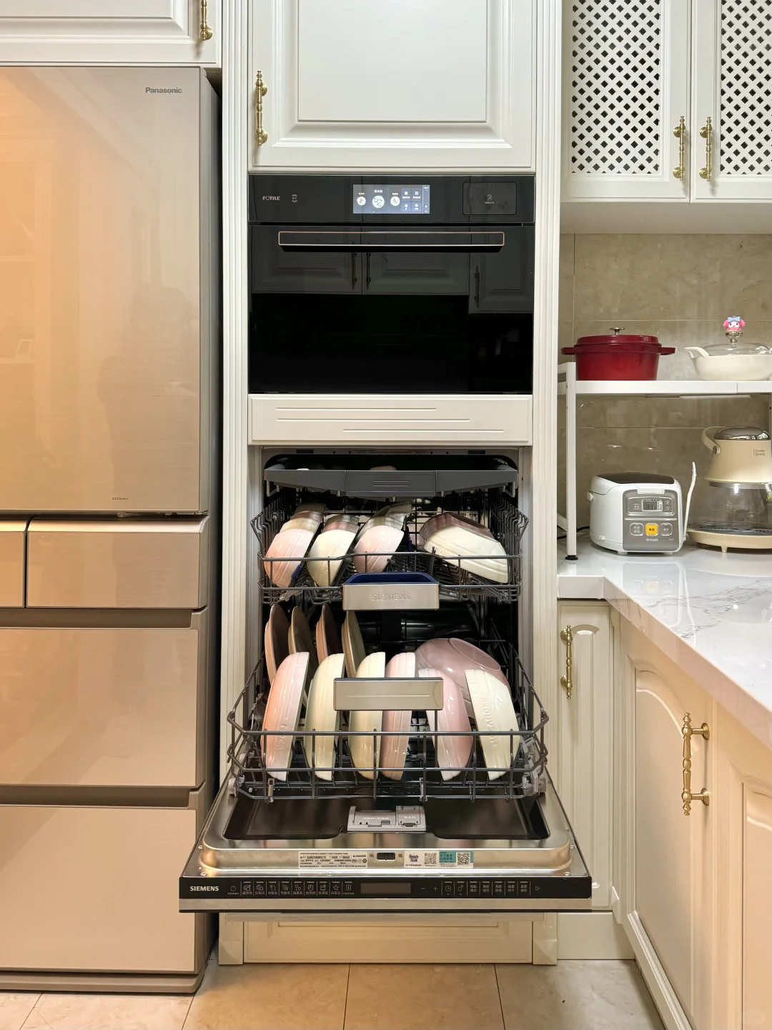 厨房是一个家庭非常重要的功能性场所,几乎一天的时间大部分时间都在厨房中度过,那在厨房中,也要安装一个洗碗机,让厨房的日常家务劳动更省时,更省力。